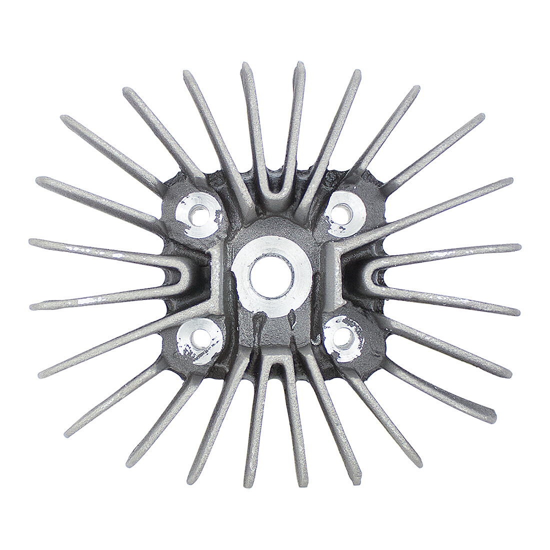 Tuningová hlava valca s vejárovým rebrovaním, určená pre motory Pionier s vŕtaním D38 mm . Konštrukcia s antidetonačnou štrbinou a centrálne umiestnenou sviečkou maximalizuje výkon. Odporúča sa použiť sviečku s dĺžkou závitu 19 mm a zodpovedajúcou tepelnou hodnotou (napr. Brisk L15C alebo NGK B7ES). Hlava je odliata do piesku, tým je štruktúra povrchu hrubá.
