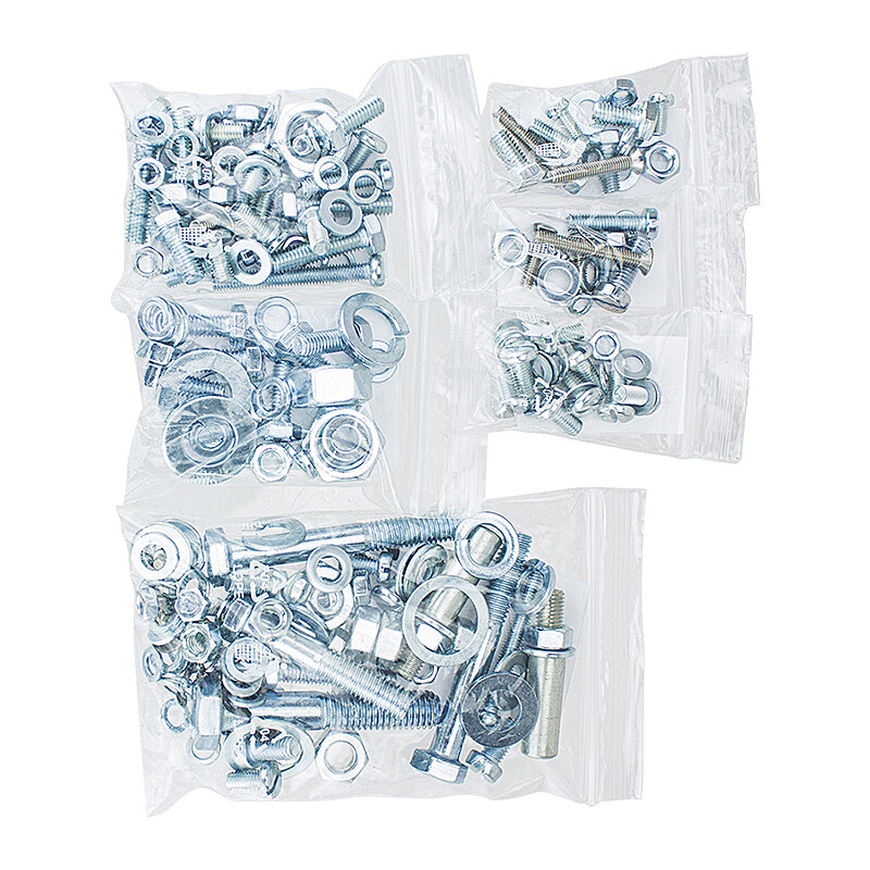 Táto kompletná sada skrutiek pre motocykel Babetta 207.500 obsahuje všetky potrebné skrutky pre montáž a servis motocykla mimo motora (možné zakúpiť tu ). Všetky diely majú pozinkovanú povrchovú úpravu. Súprava obsahuje cca 200 ks spojovacieho materiálu.