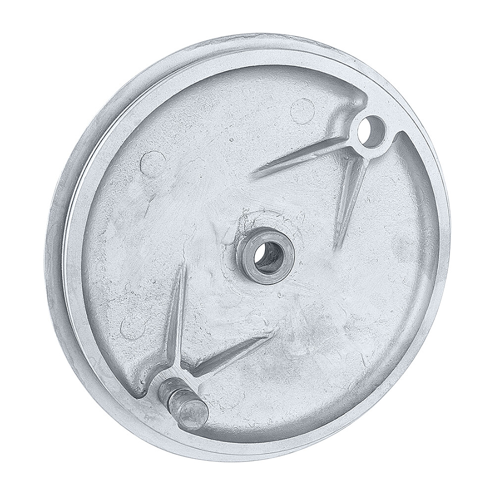 Replika predného brzdového štítu v holom prevedení. Po odliatí boli zo štítu ručne odstránené drobné nedostatky a následne bol povrch zjednotený jemným tryskaním vodným lúčom.