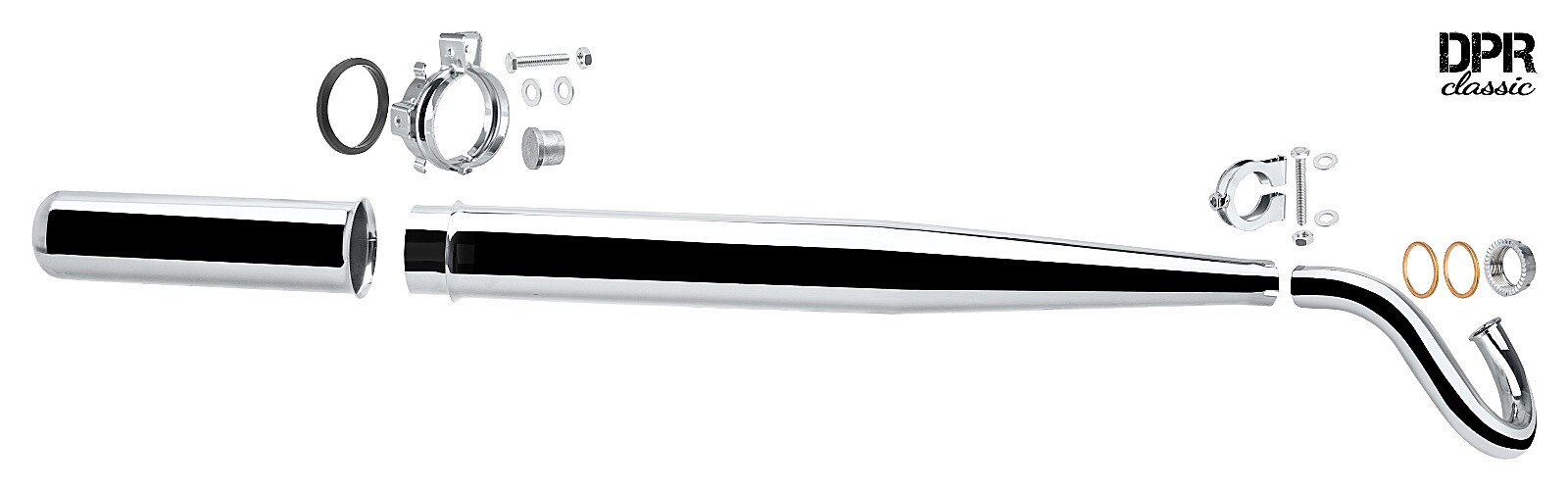 Kompletne navrhnuté koleno s masívnou prírubou zvarenou metódou TIG zaisťuje tesné spojenie a vysokú odolnosť . Výfuk sa vyznačuje dokonale vyhladenými zvarmi, brúsenými povrchmi a veľmi kvalitným chrómom . Všetky komponenty presne pasujú, takže montáž je bez problémov.
